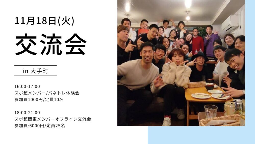 【11月18日(火)開催】スポ超メンバー関東オフライン交流会@八丁堀 @東京・八丁堀
